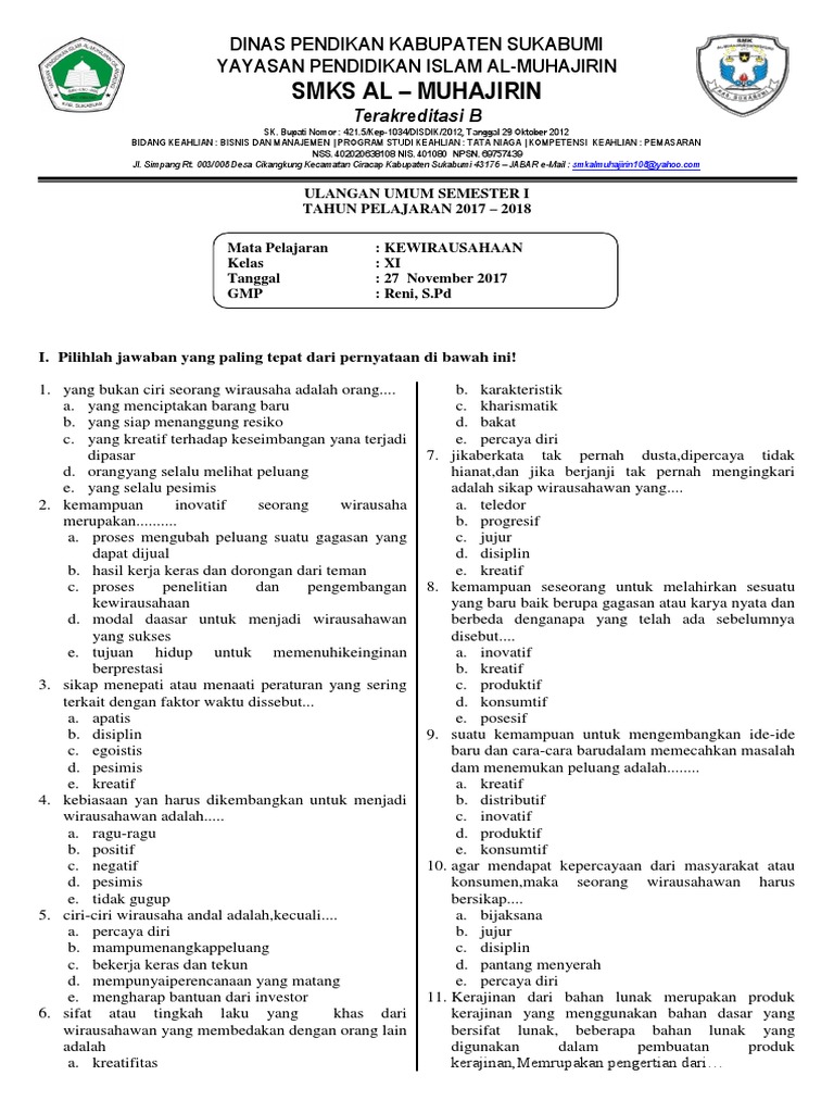 Kisi Kisi Soal Produk Kreatif Dan Kewirausahaan Smk Kelas Xi Jawabanku Id from imgv2-1-f.scribdassets.com Apr 16, 2021 · soal pkk kelas 12 +kunci jawaban 2021. Materi produk kreatif dan kewirausahaan bab 1 tentang sikap dan perilaku wirausahawan. Rpp kelas 7 bahasa inggris sem 1 rpp pai k13 smp bahan ajar produk kreatif kls xi bahan ajar pdf produk kreatif dan kewirausahaan kls xii perangkat pembelajran berbasis kompetensi inti perangkat pembelajaran sdit kelas 2 rpp silabus biologi pdf silabus aswaja mts k13 rpp. Kunci jawaban buku pjok kelas 5 k13 pdf rpp bahasa inggris sma jawaban paket ips kelas 8 s jawaban bahasa inggris kelas 9 halaman 135. Unit bisnis yang mengolah sumber daya alam menjadi barang jadi disebut area bisnis …. Jawaban uji kompetensi produk read more Dec 10, 2020 · kunci jawaban buku paket produk kreatif dan kewirausahaan kelas 11. Mar 19, 2021 · soal produk kreatif dan kewirausahaan pkk kelas 12 semester 2 buku produk kreatif dan kewirausahaan untuk smk kelas xii semua.