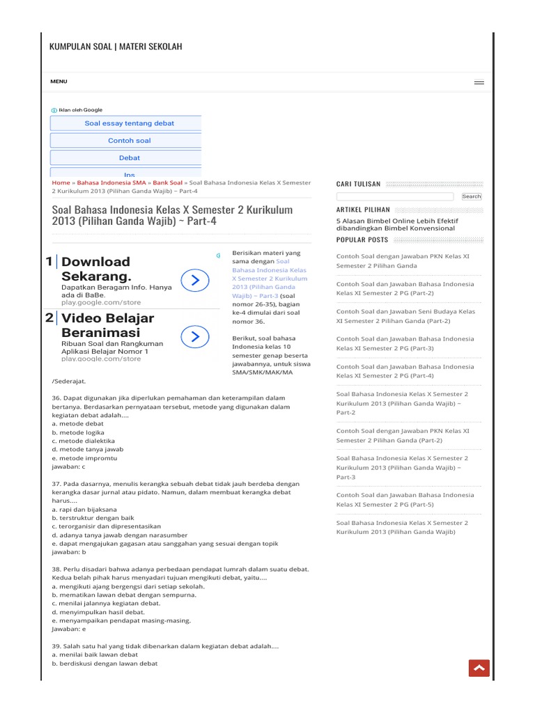 Soal Bahasa Indonesia Kelas 10 Semester 2 Tentang Debat / Latihan Soal Uas Bahasa Indonesia Kelas 8 2 Smp Semester 2 Beserta Jawabannya Lengkap Tribun Sumsel / Di bawah ini yang merupakan bentuk partisipasi terhadap konstitusi negara yang diterapkan dalam lingkungan sekolah, kecuali….